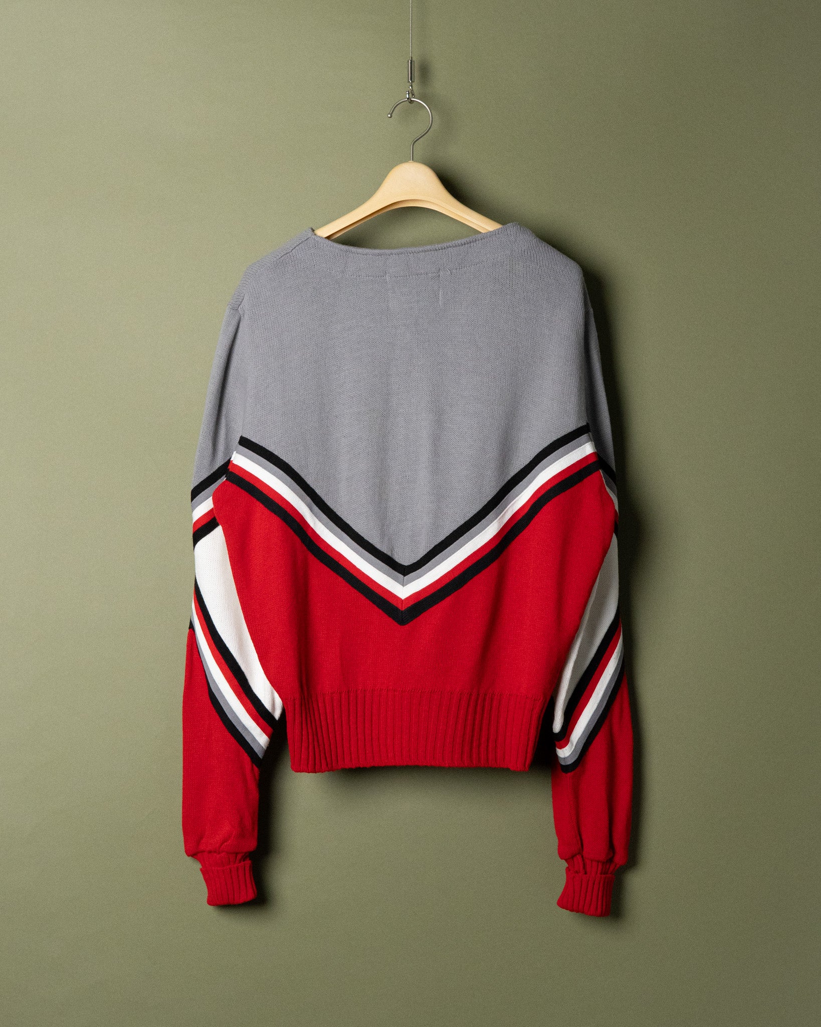 チアニットを思わせるV字のラインが、アクリル特有の強い発色と合わさって、鮮やかな印象を残します。