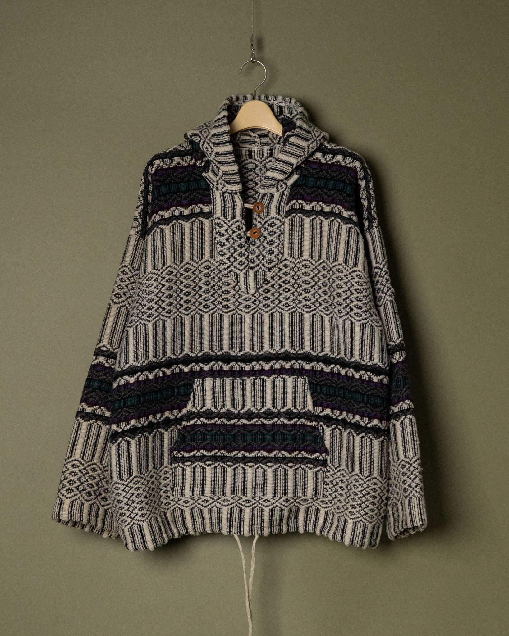 この開きのつくりやフードの形状から、いわゆるメキシカンパーカを思わせますが、それよりも完成度の高い印象です。