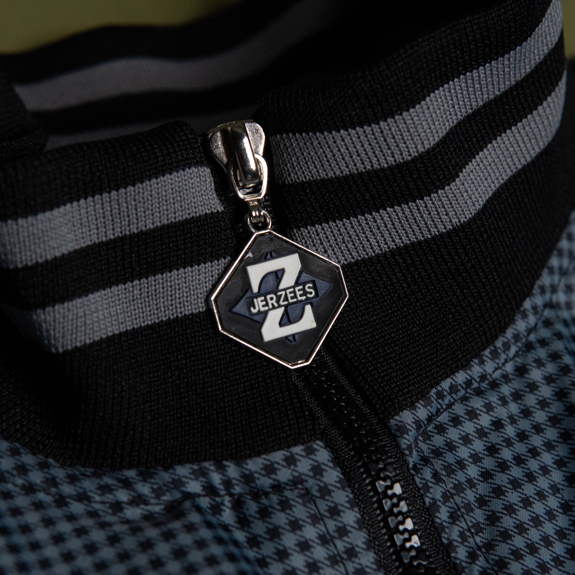 細かい千鳥格子柄で、わずかに青みを含んだグレーの色味が非常にクール。