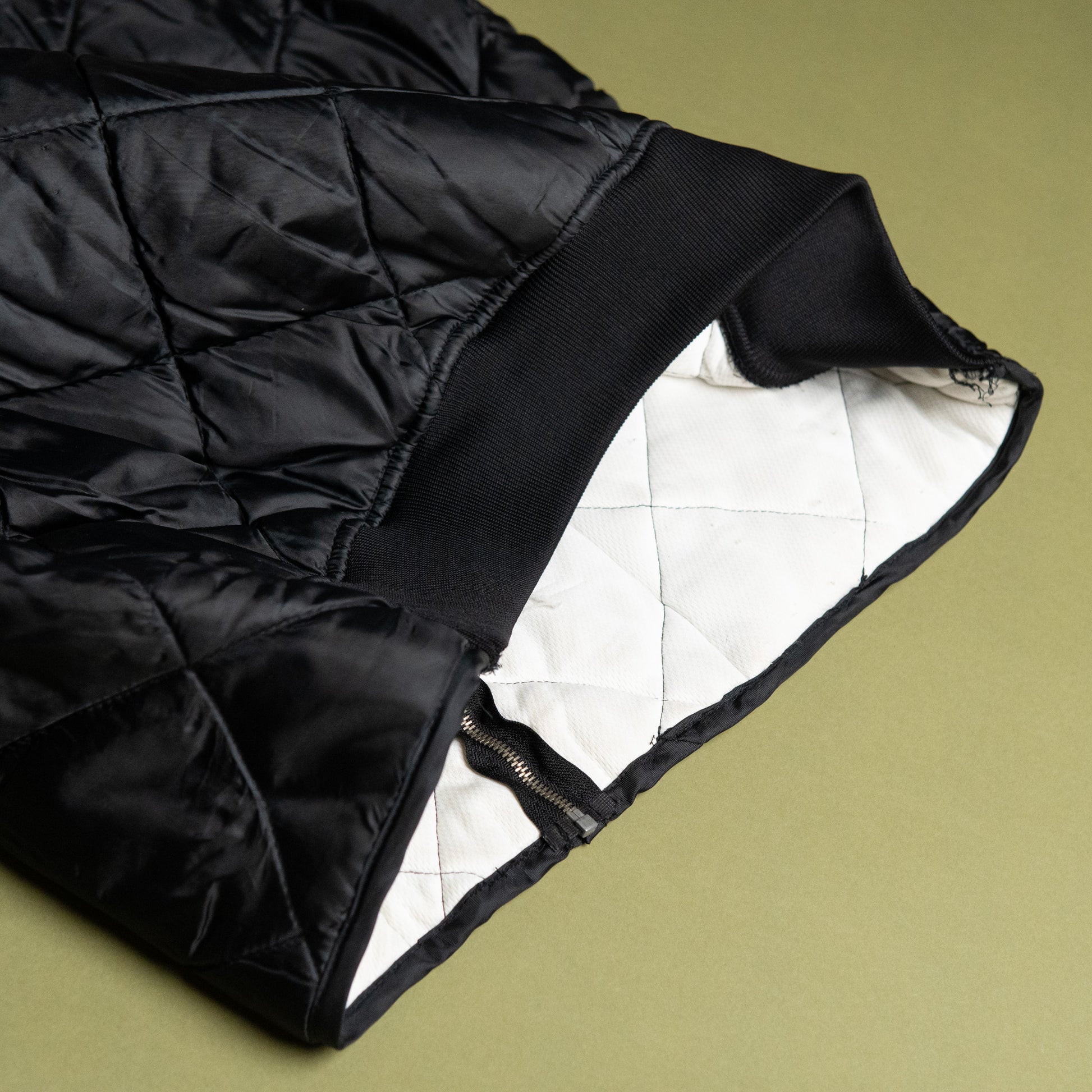 いわゆるライナー系のものと違う点には、シルエットがボンバージャケット的であることも挙げられるでしょう。襟、裾(後ろのみ)、袖口にリブの付いた、丸みのあるシルエットです。